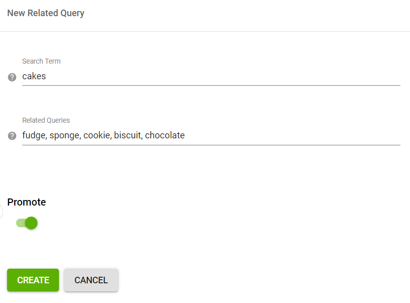 For example, cake can be related to fudge, sponge, cookie, biscuit, chocolate.